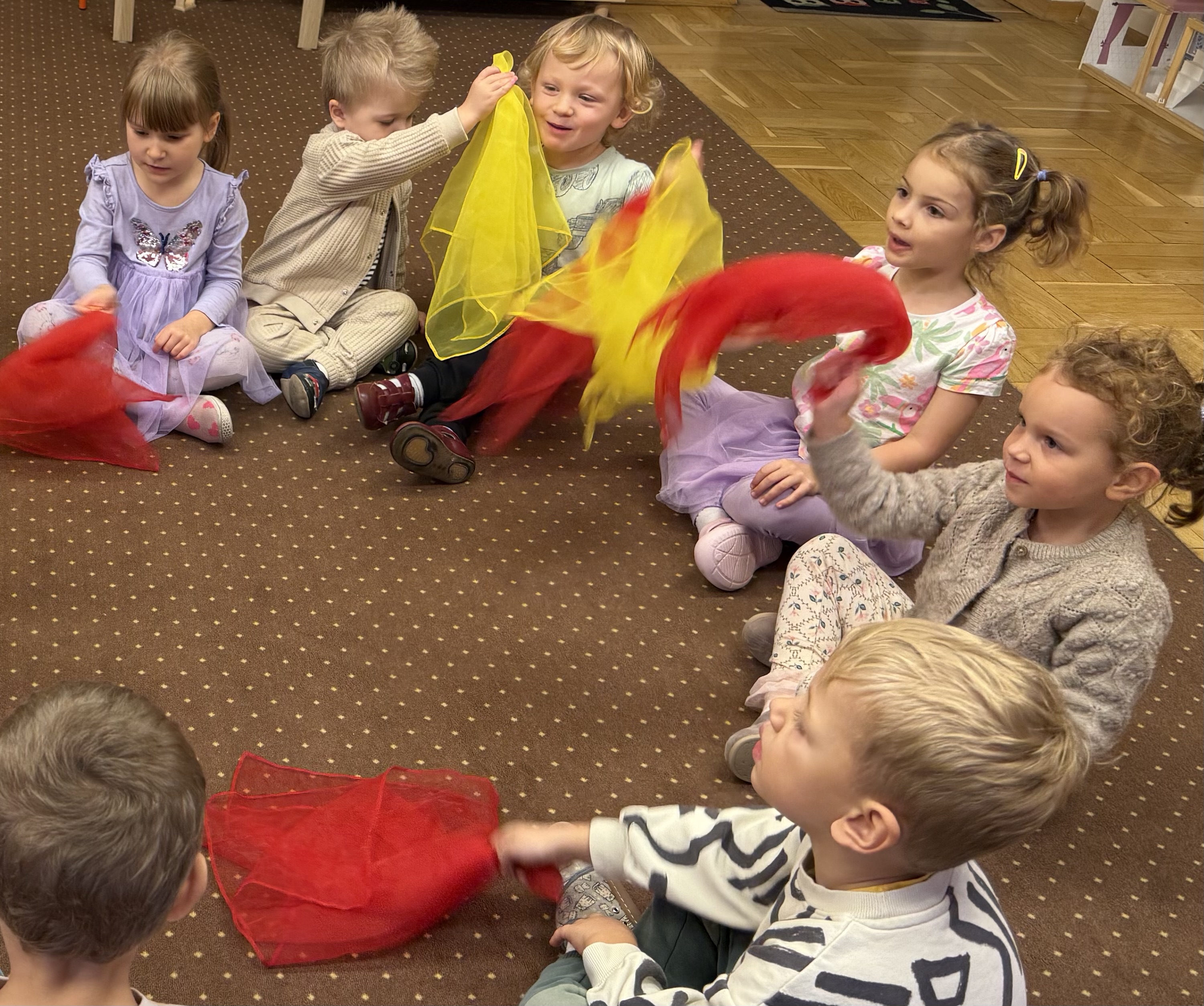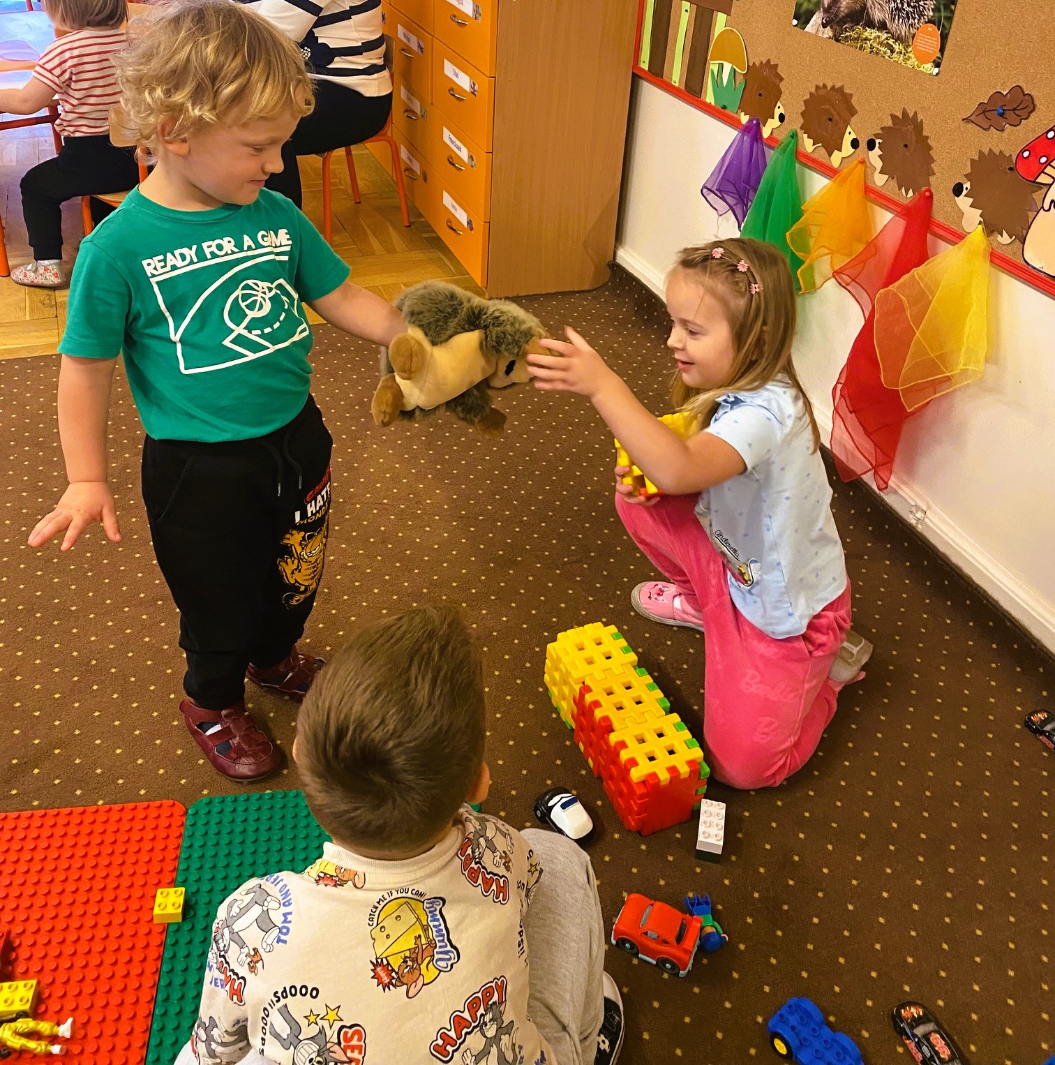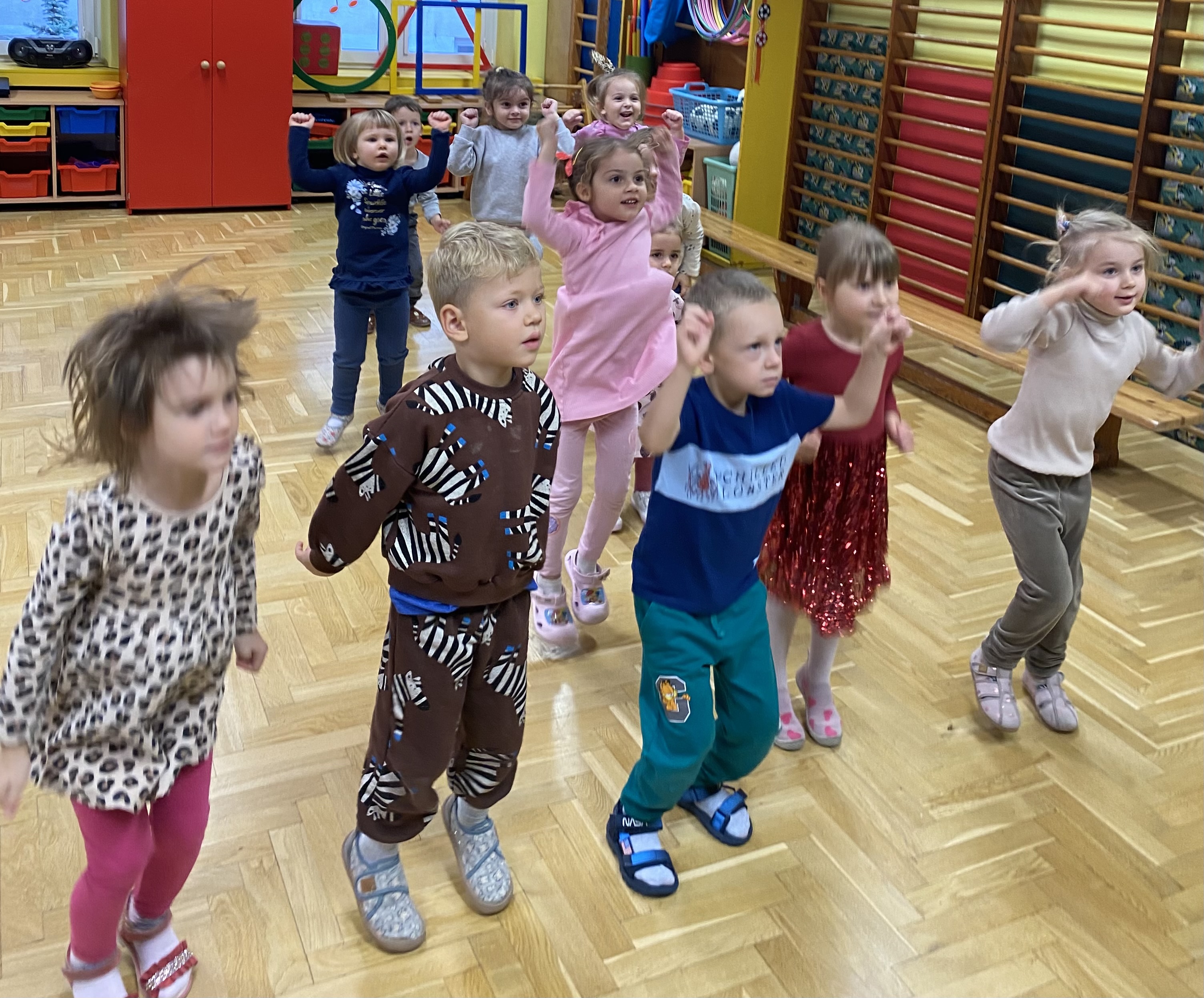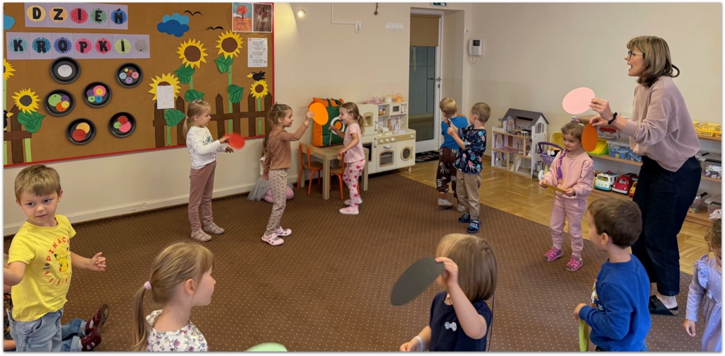 Lubią różne aktywności: zabawy ruchowe, taneczne i plastyczne, eksperymenty i zabawy sensoryczne. Ruch na świeżym powietrzu.
