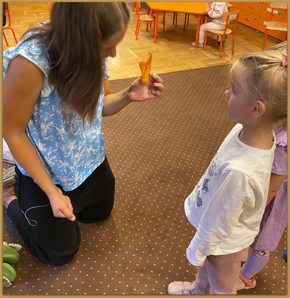 Bardzo chętnie biorą udział w zajęciach organizowanych przez swoje panie, są aktywne, uważne, zadają dużo pytań.