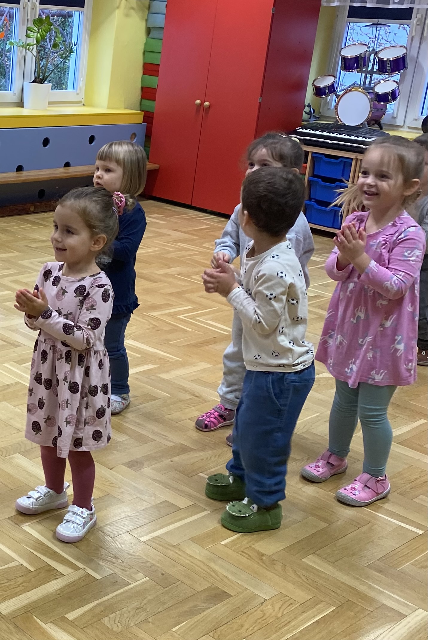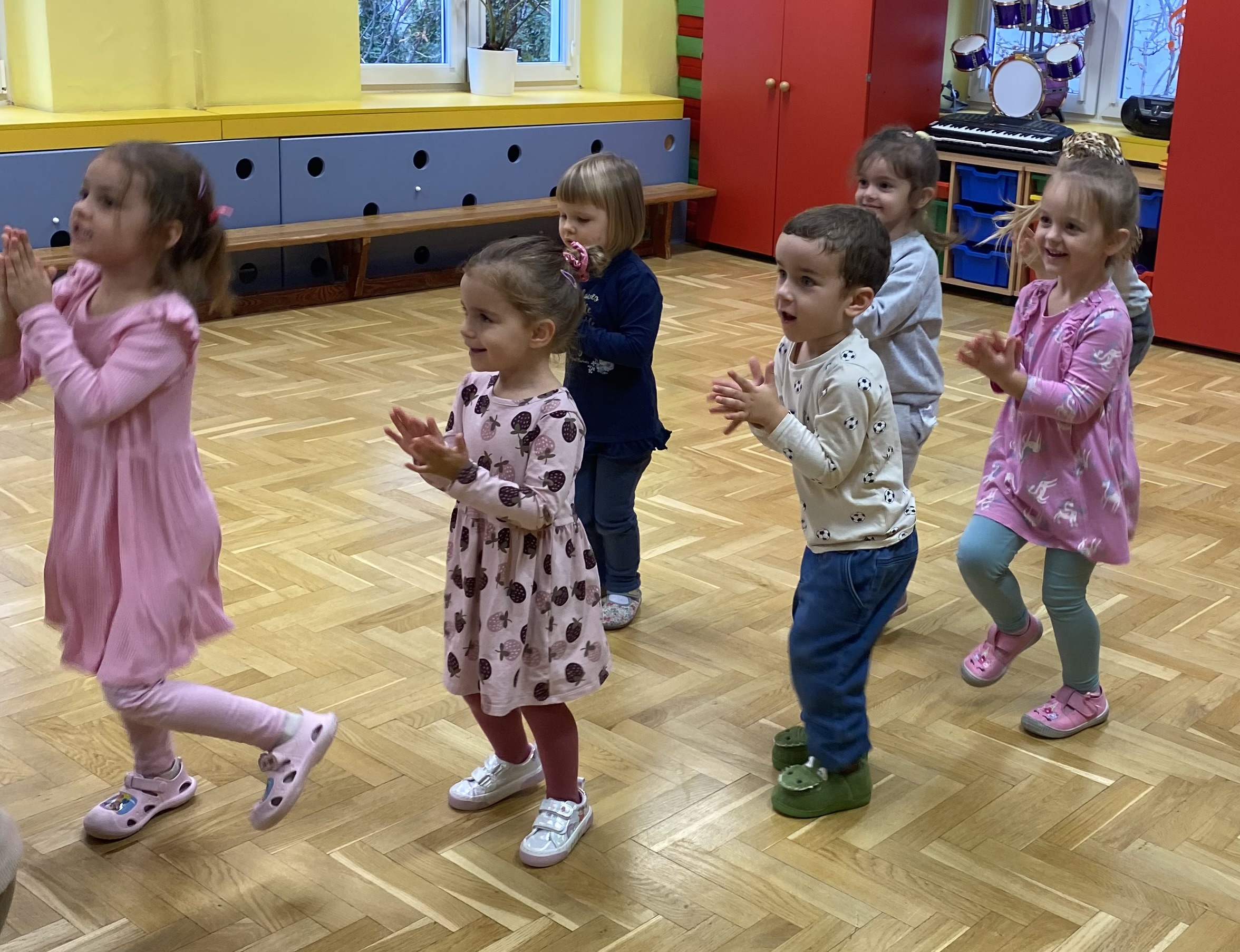 Pszczółki zawsze lubią zabawy ruchowe (w sali i w ogrodzie) i pląsy przy muzyce, są chętne do wspólnych zabaw, szybko zdobywają wiedzę i nowe umiejętności.