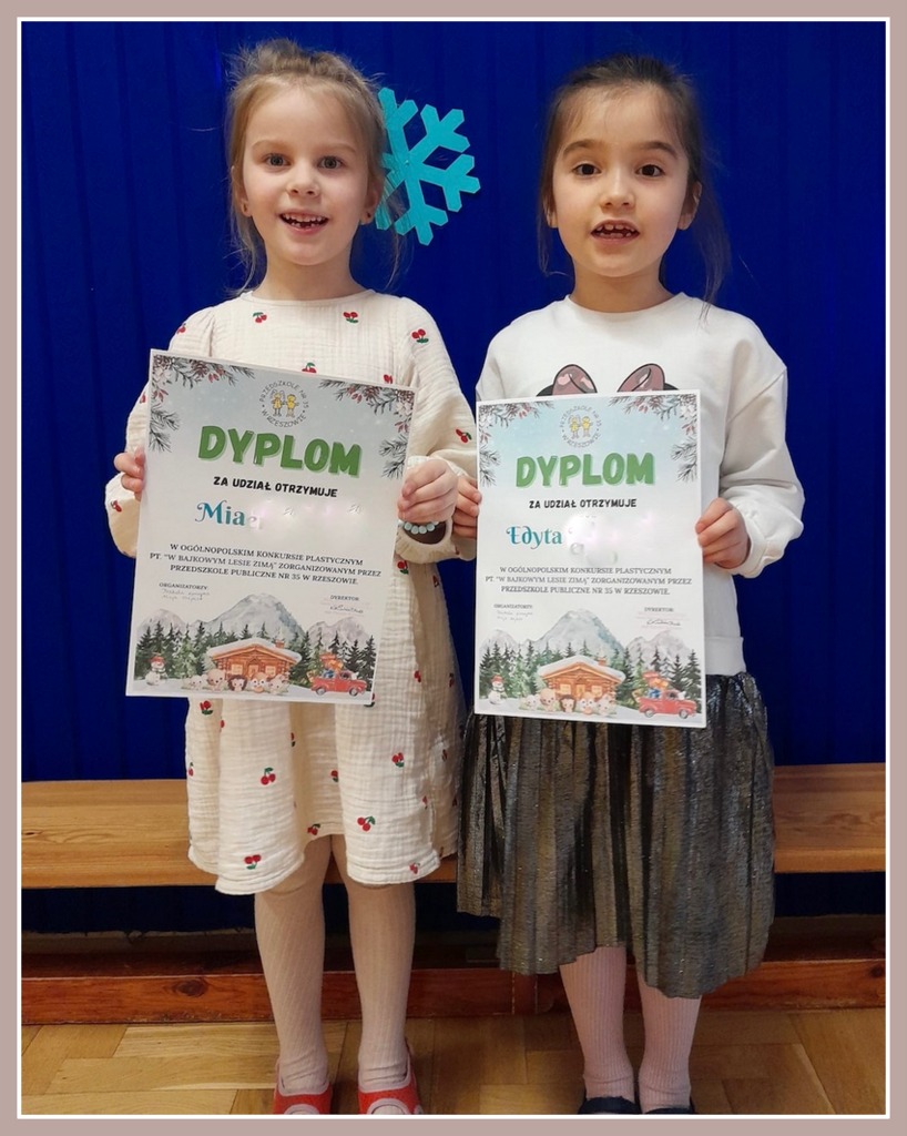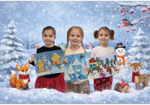 Liza z gr. III Liski oraz Edytka i Mia z gr. IV Sówki wzięły udział w Ogólnopolskim Konkursie Plastycznym "W bajkowym lesie zimą"