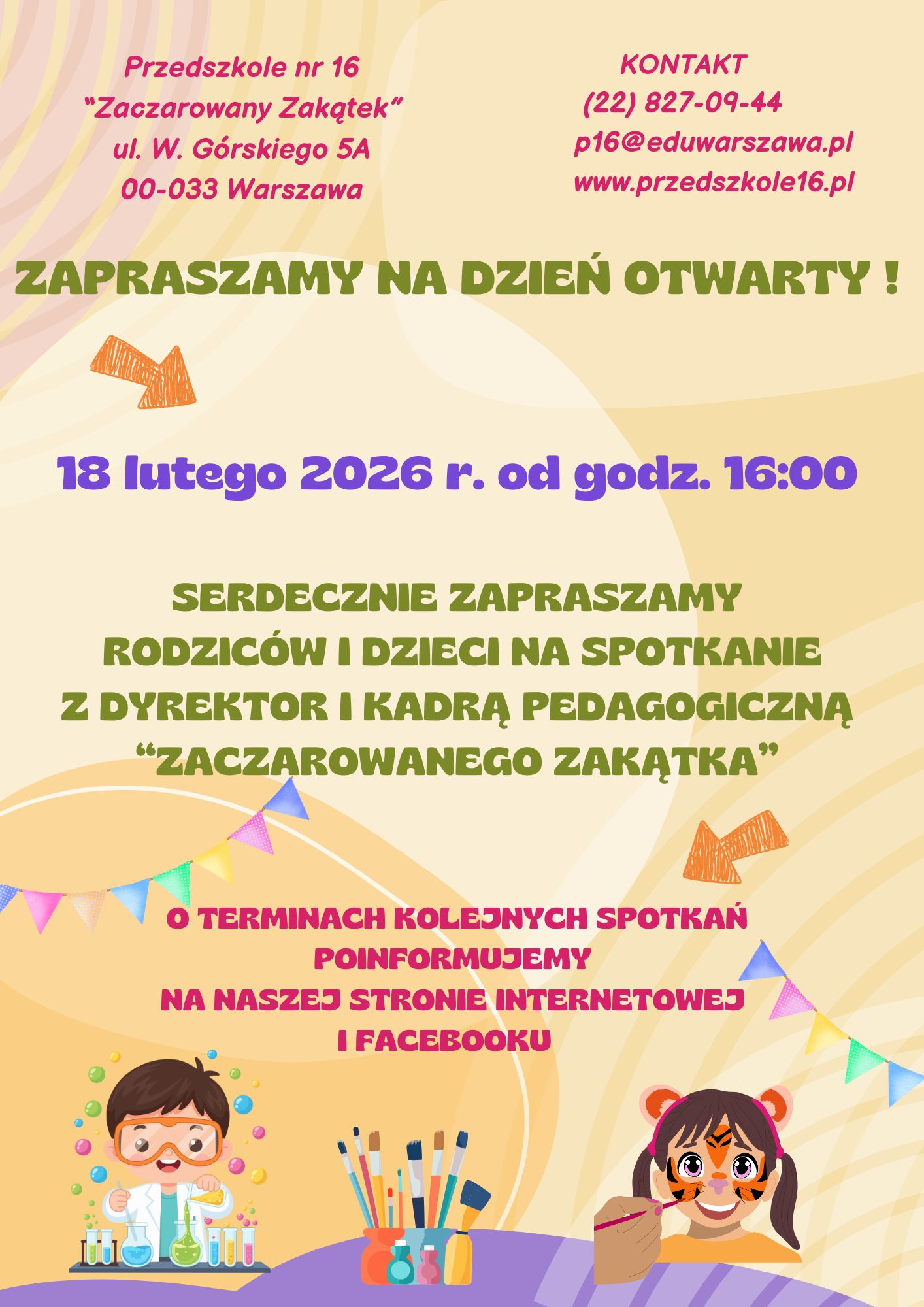 18 lutego (środa) od godz. 16:00 serdecznie zapraszamy rodziców i dzieci na DZIEŃ OTWARTY