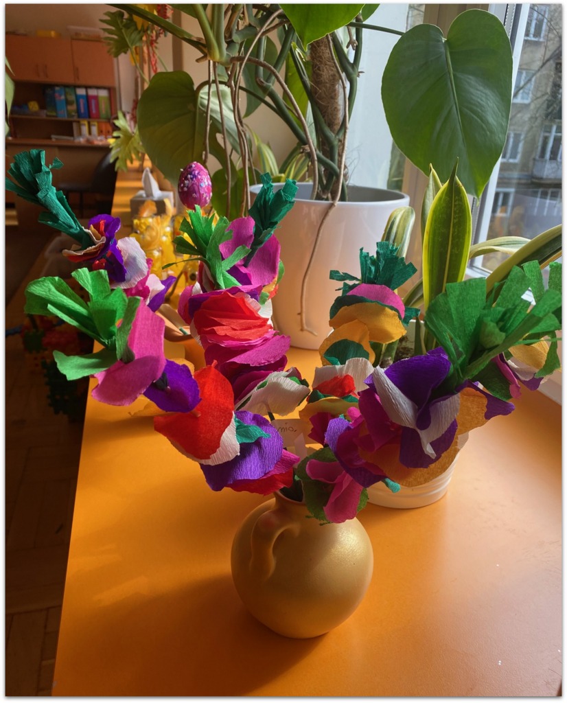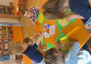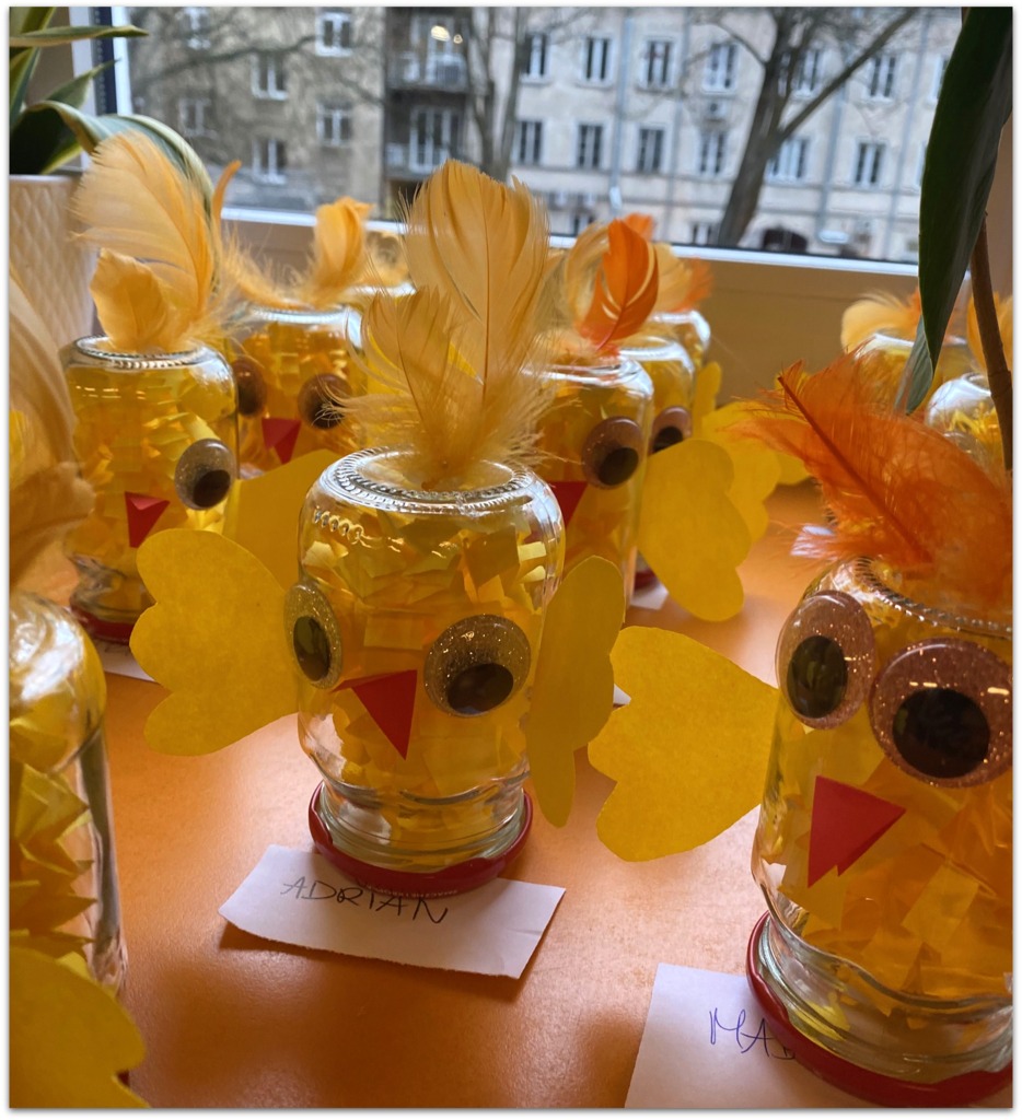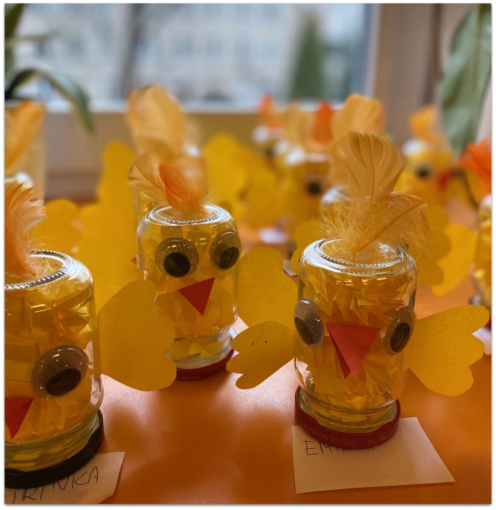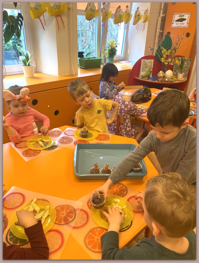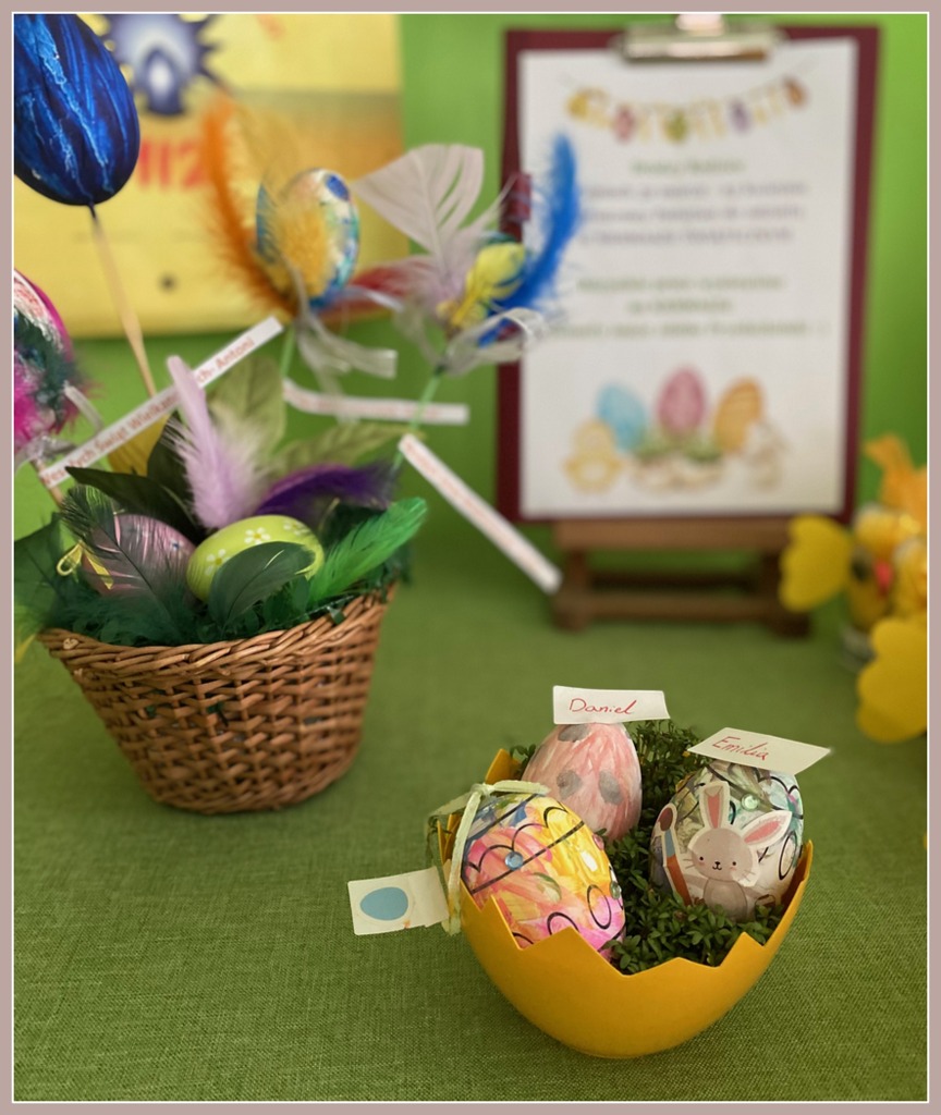 W czasie zajęć organizowanych przez nauczycielki poznają wielkanocne piosenki oraz polskie tradycje - np. wykonywanie palm wielkanocnych, ozdabianie jaj, śmigus - dyngus.