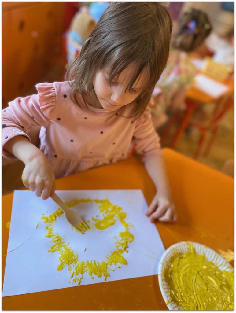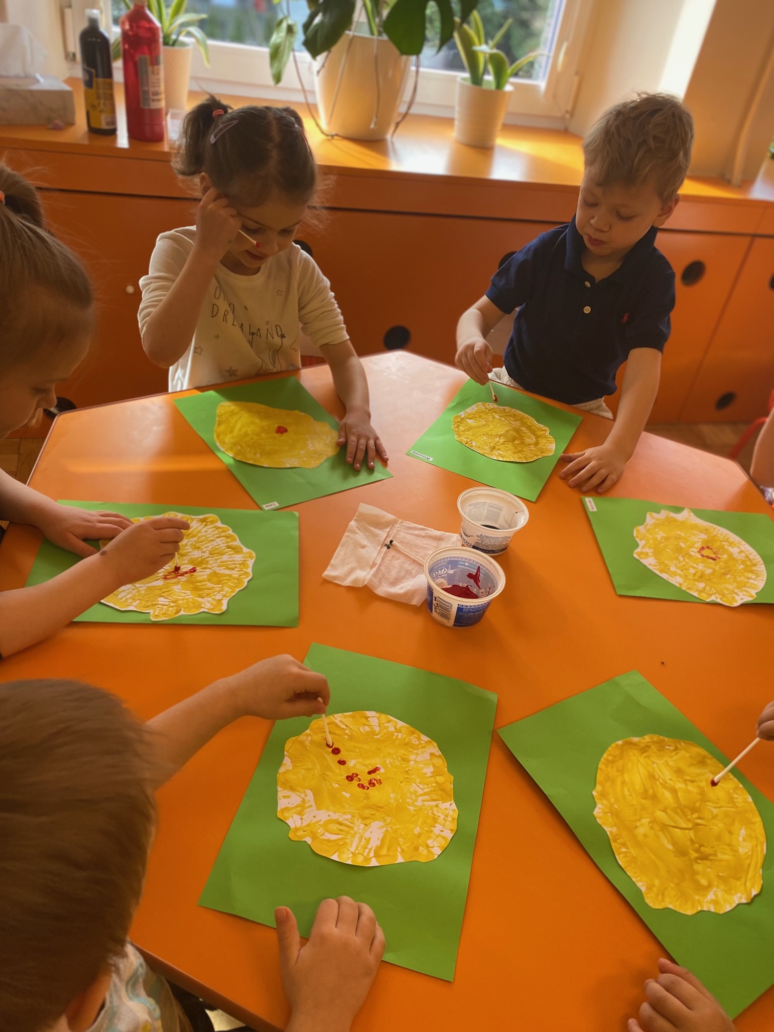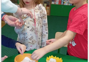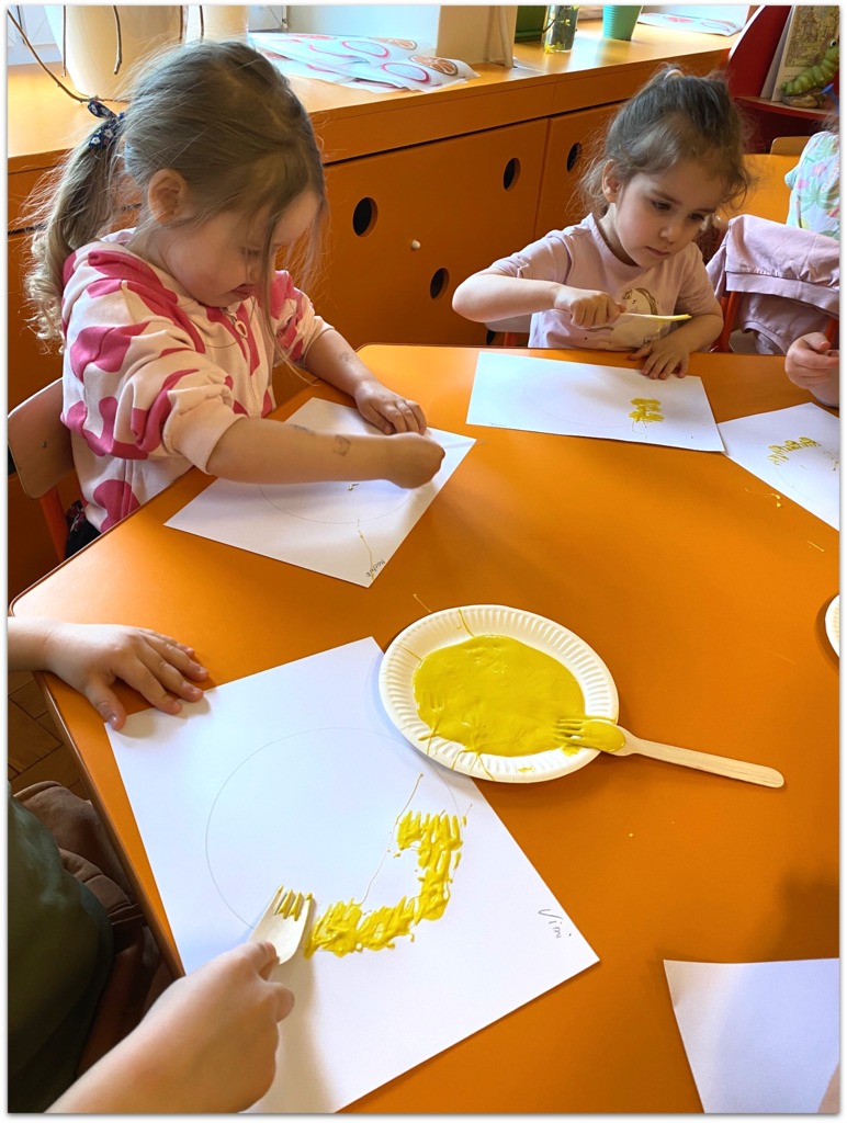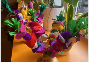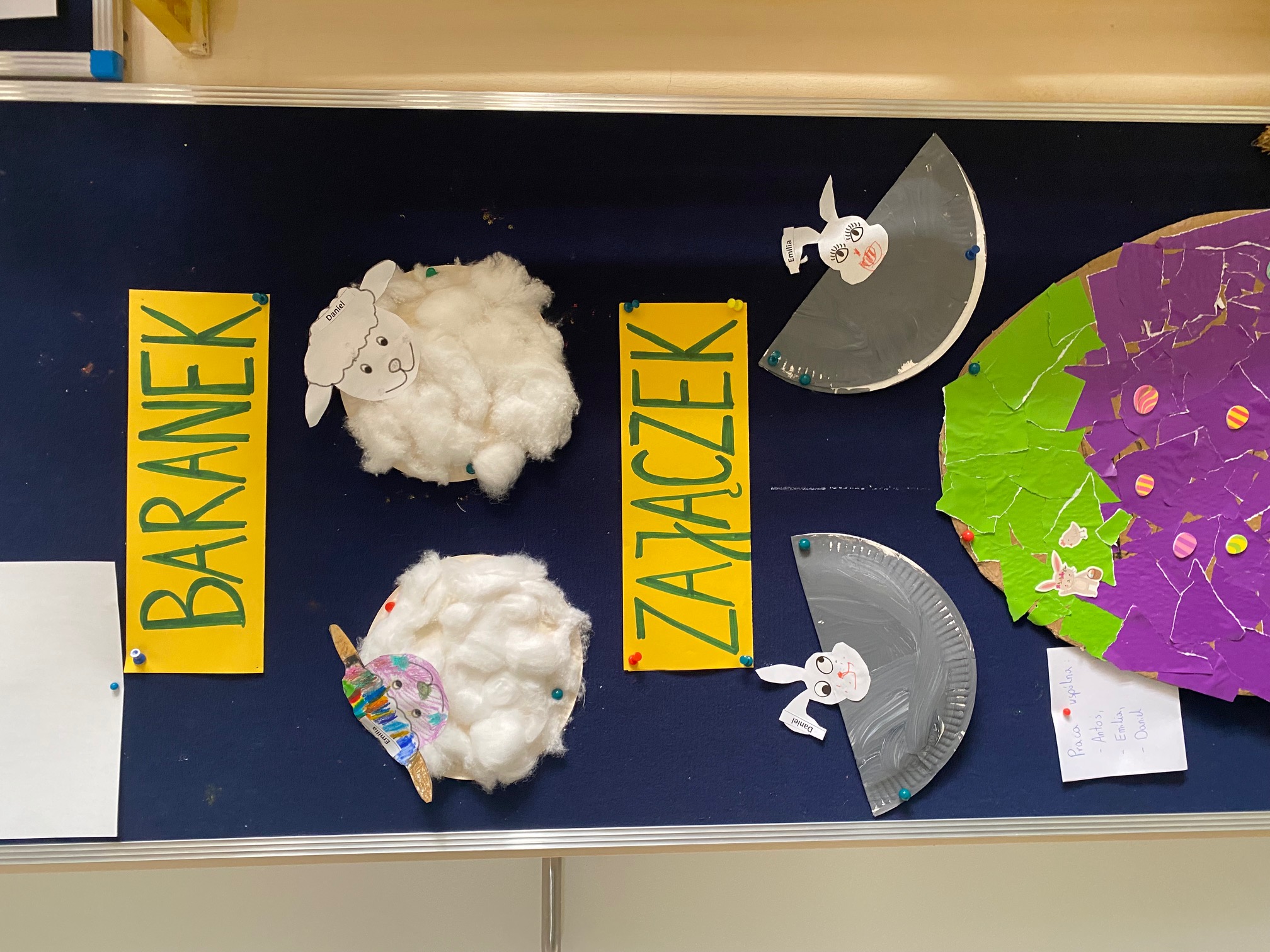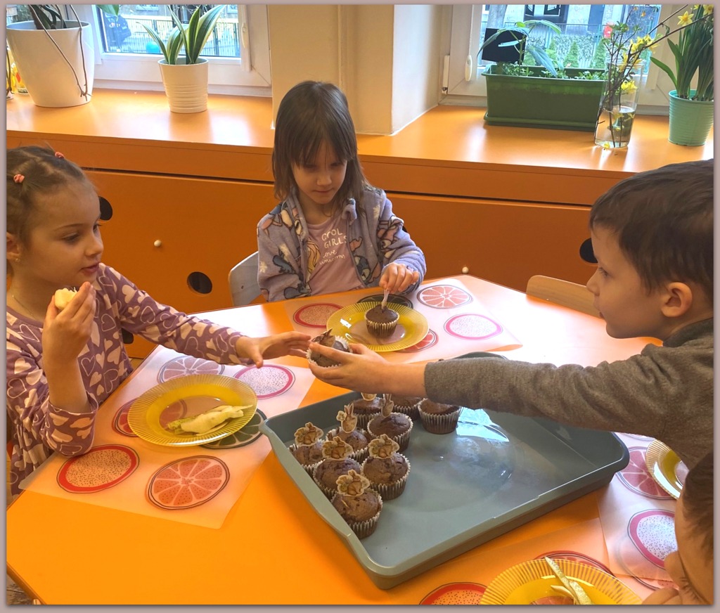 W czasie zajęć organizowanych przez nauczycielki poznają wielkanocne piosenki oraz polskie tradycje - np. wykonywanie palm wielkanocnych, ozdabianie jaj, śmigus - dyngus.