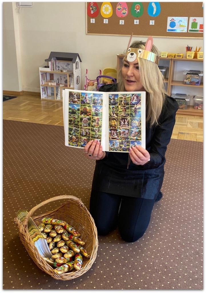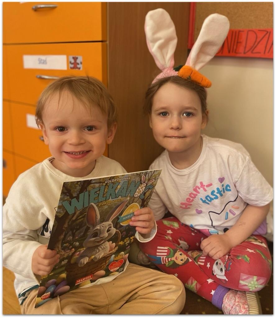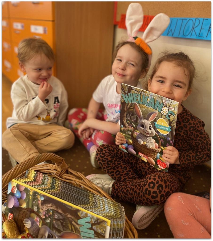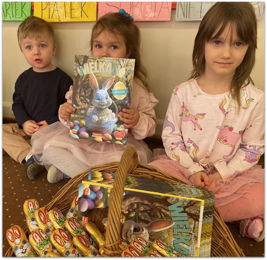 Pani Dyrektor przekazała Przedszkolakom prezenty, które dla nich przygotował- każdy otrzymał książeczkę oraz czekoladowego zajączka.