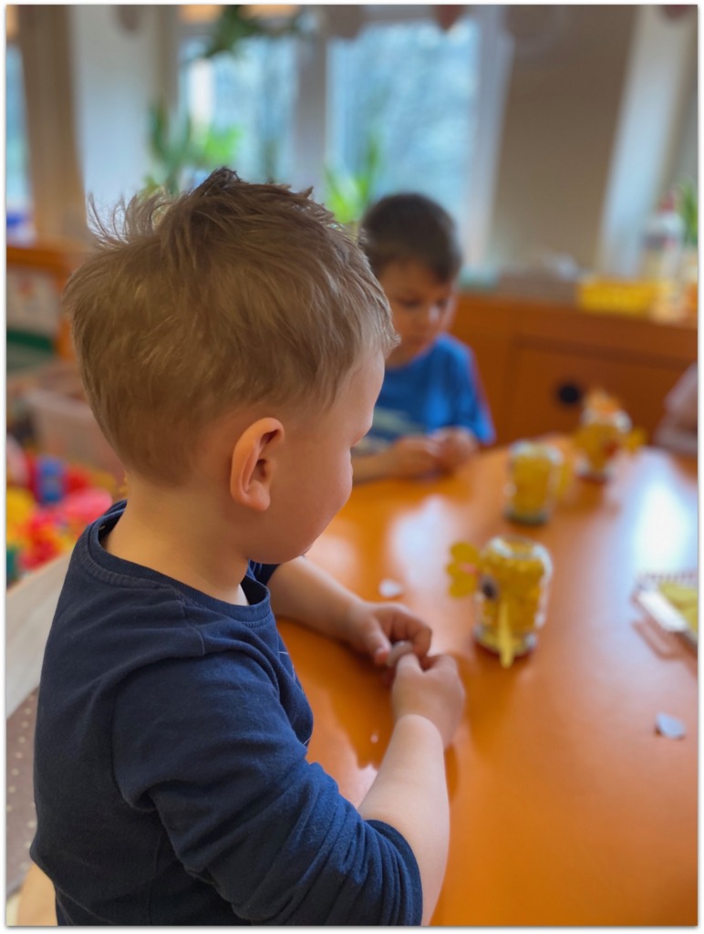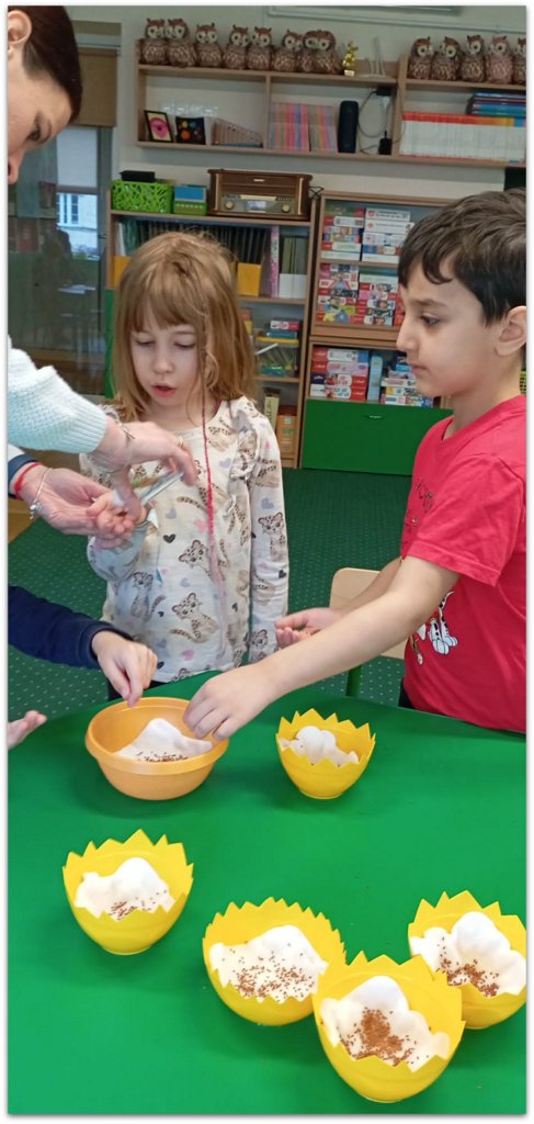 W dniach poprzedzających Wielkanoc dzieci z przyjemnością angażują się świąteczne przygotowania.