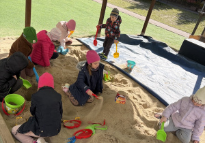 Na naszym placu zabaw pojawiły się już pierwsze nowe zabawki- łopatki, wiaderka, foremki do piasku oraz rowerki.