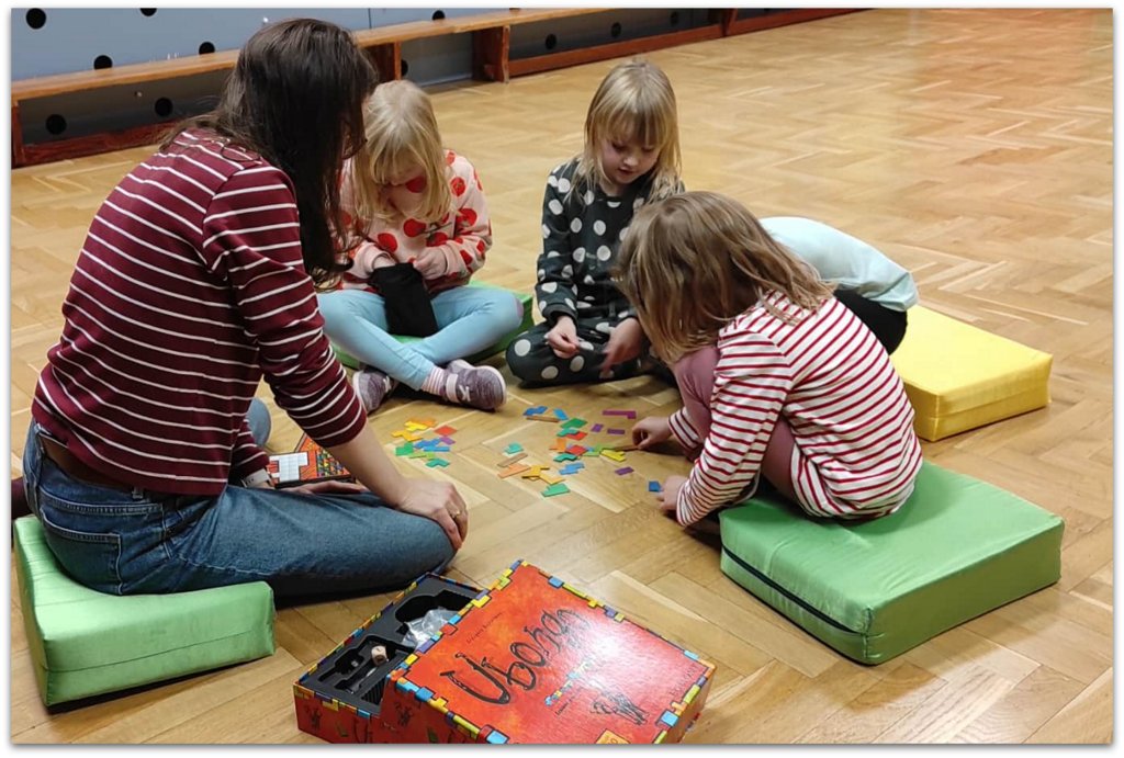 3 grudnia chętne Sówki zagrały z mamą Helenki S. w grę planszową UBONGO.