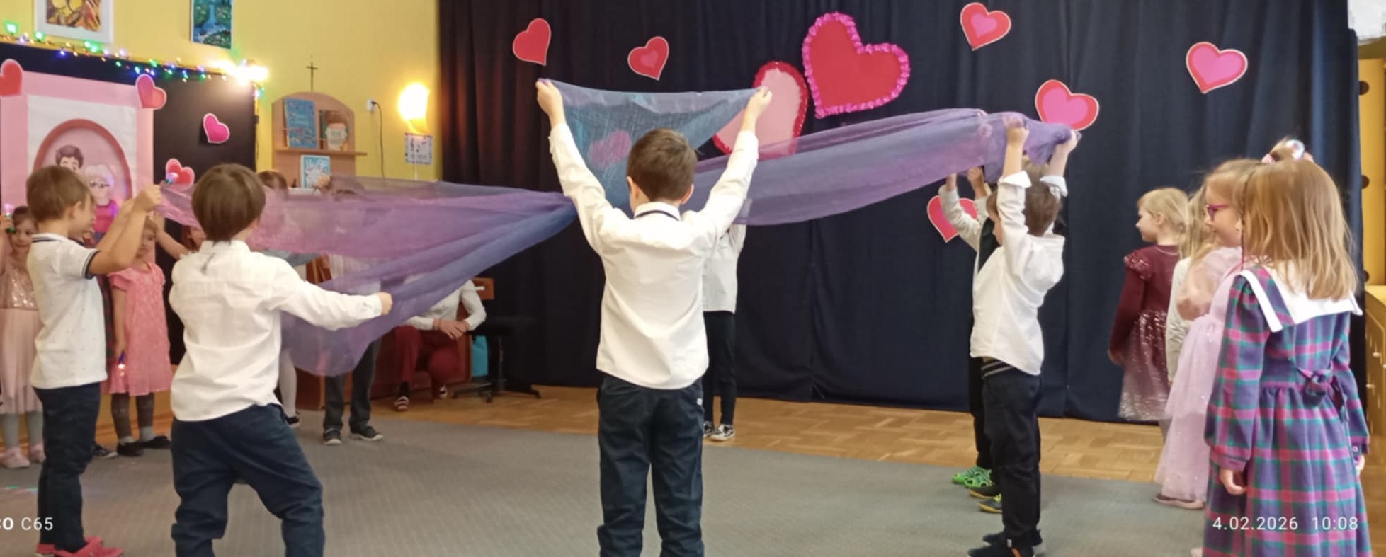 W dniu 4 lutego w naszym przedszkolu odbył się wyjątkowy występ z okazji Dnia Babci i Dziadka. Dzieci ze wszystkich grup z wielkim zaangażowaniem zaprezentowały przygotowany program artystyczny- były wierszyki, piosenki oraz tańce, które wzruszyły i rozradowały zaproszonych gości. Mali artyści włożyli w swoje występy całe serca, a nagrodą były uśmiechy, brawa oraz ciepłe słowa od dumnych Babć i Dziadków. To był niezapomniany dzień pełen radości i miłości.