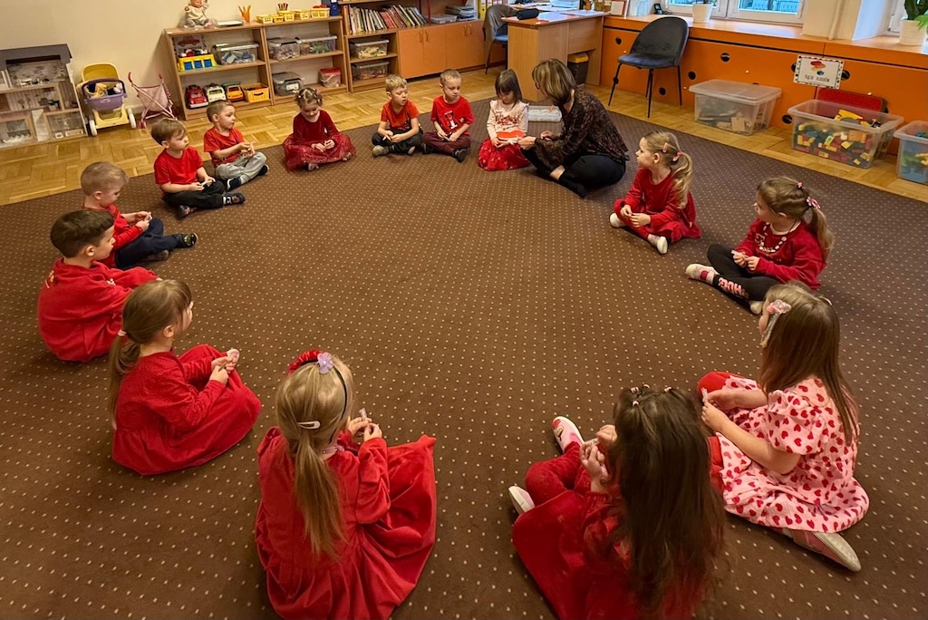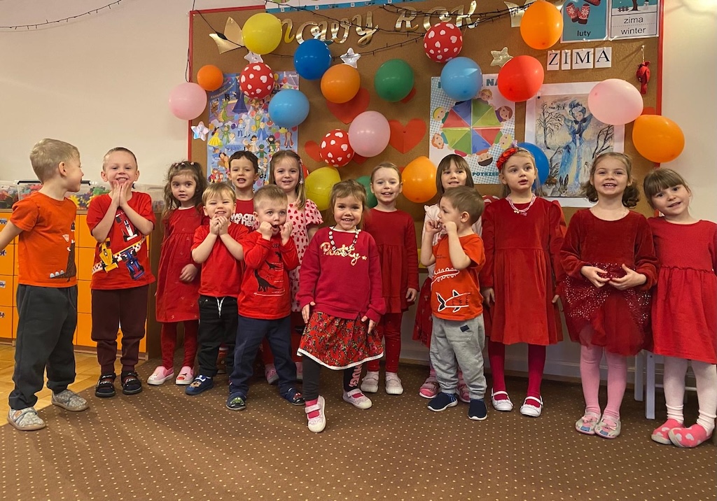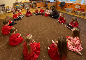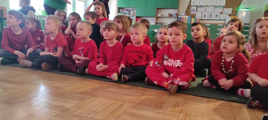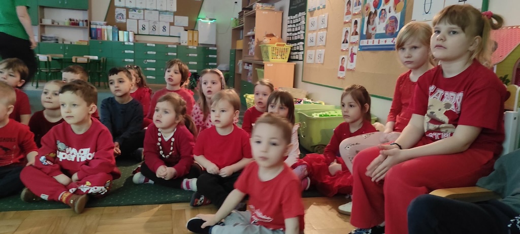 Dla podkreślenia wyjątkowości tego dnia dzieci przyszły ubrane na czerwono.