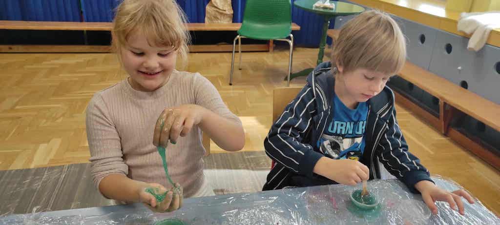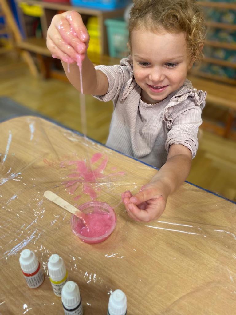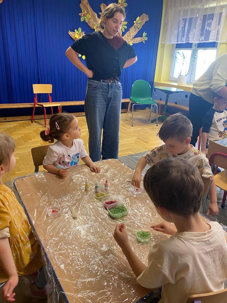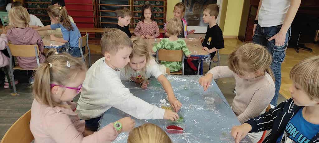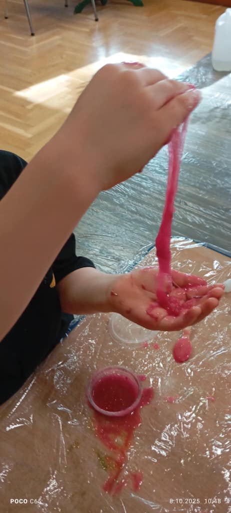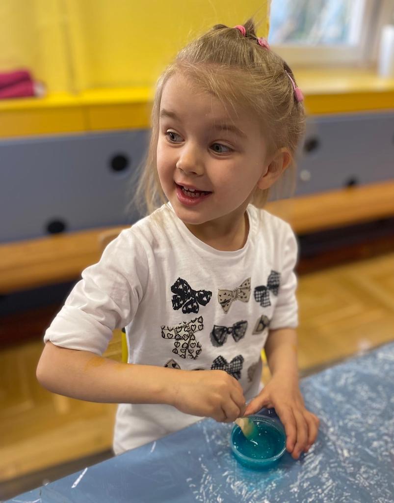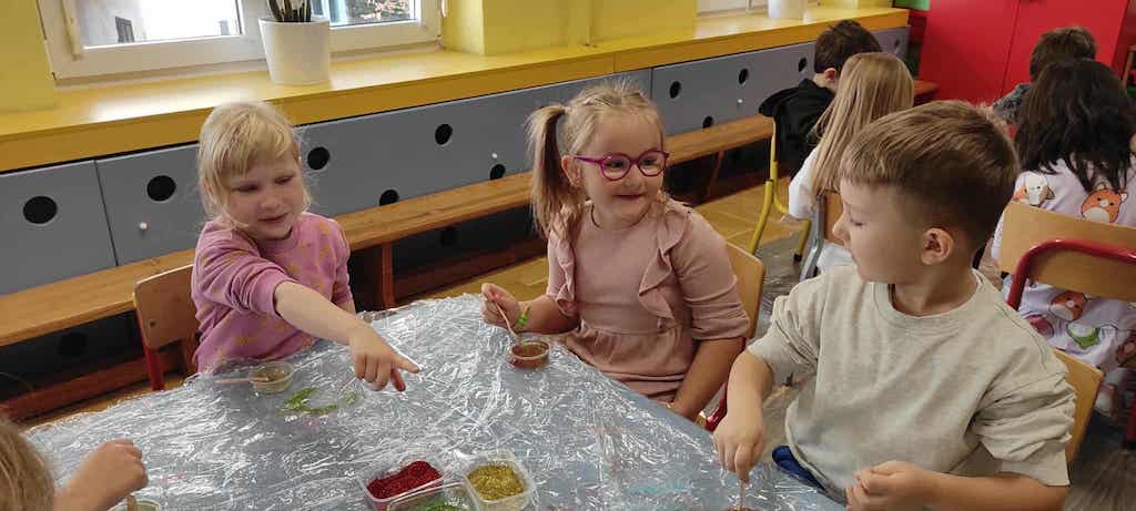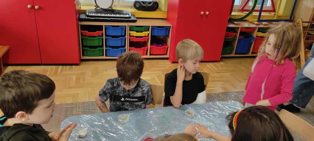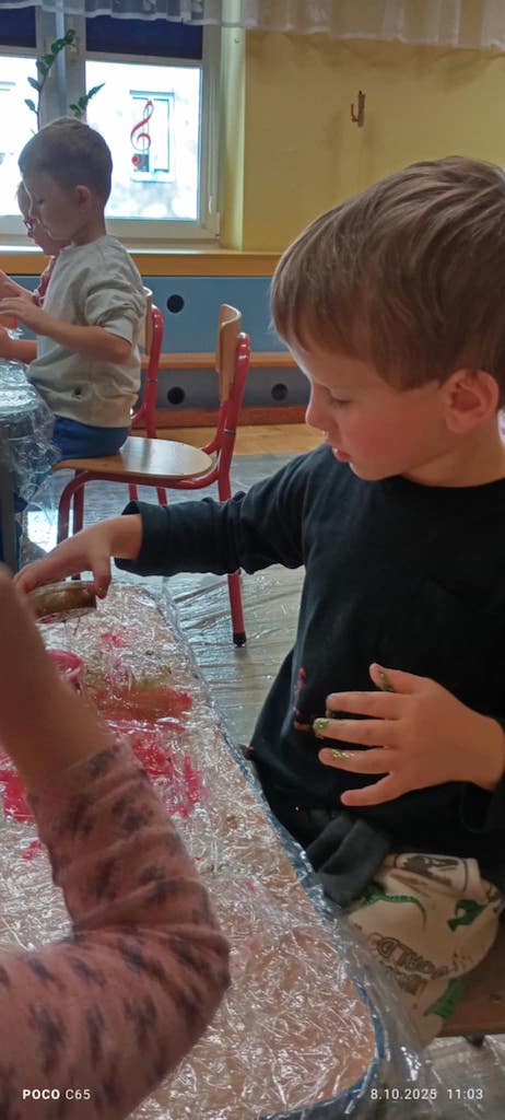 8 października dzieci ze wszystkich grup wzięły udział w warsztatach sensorycznych pt. "Masy plastyczne"- Tibidabu. Podczas zajęć każde z dzieci własnoręcznie wykonało slimy.