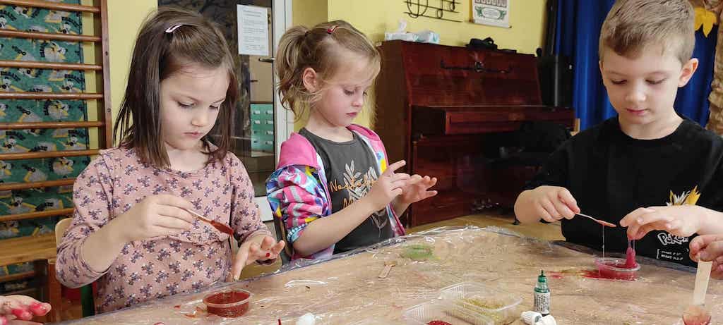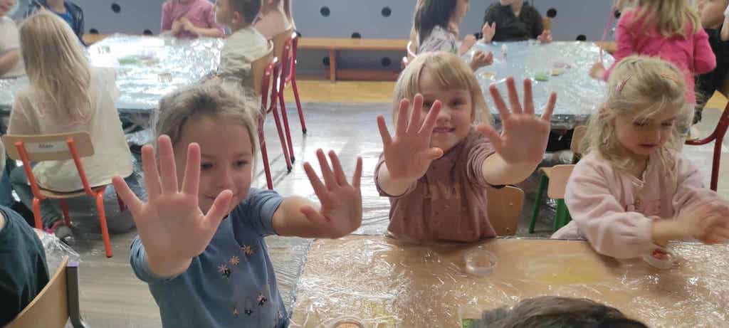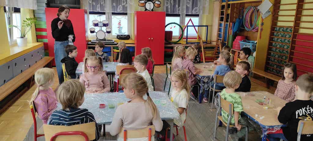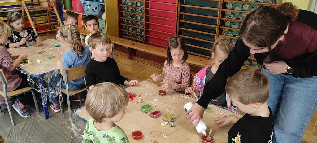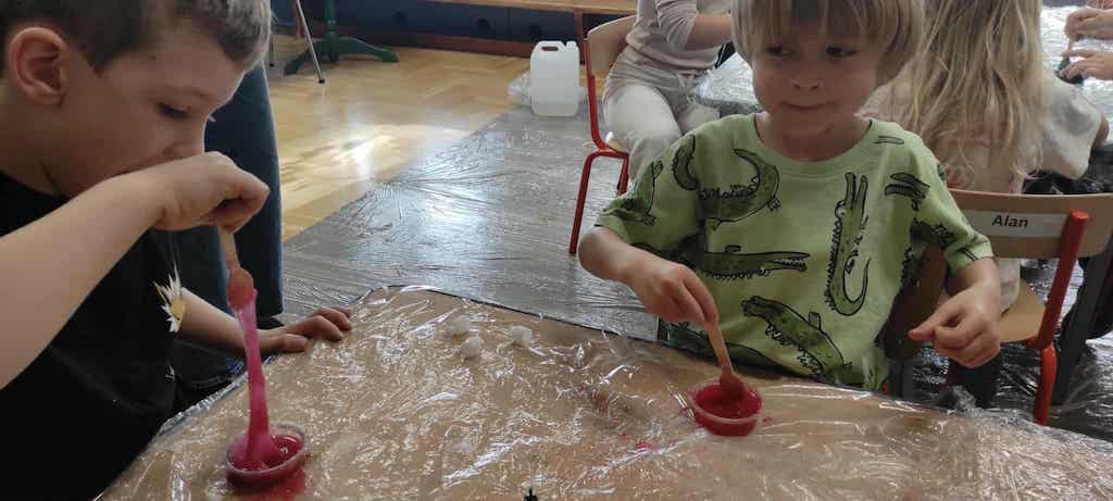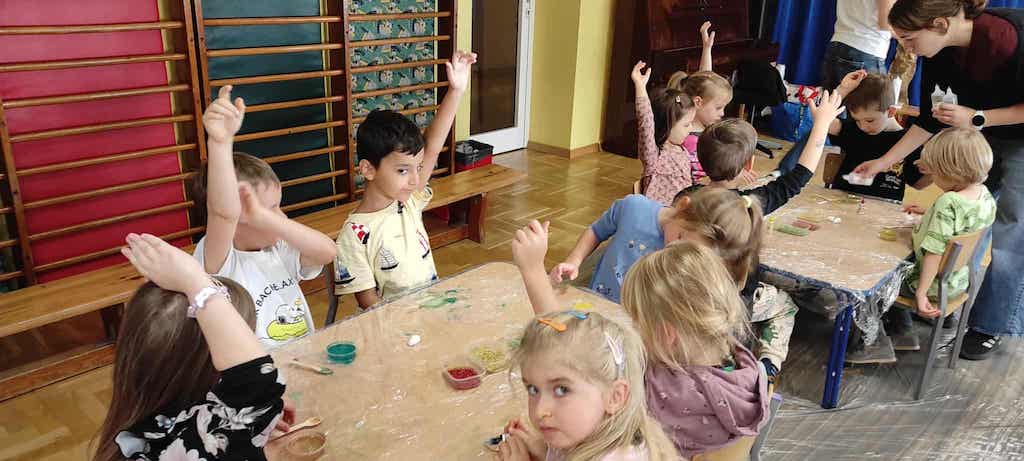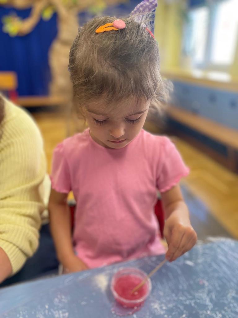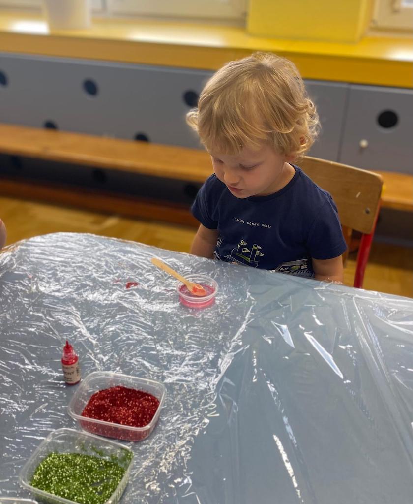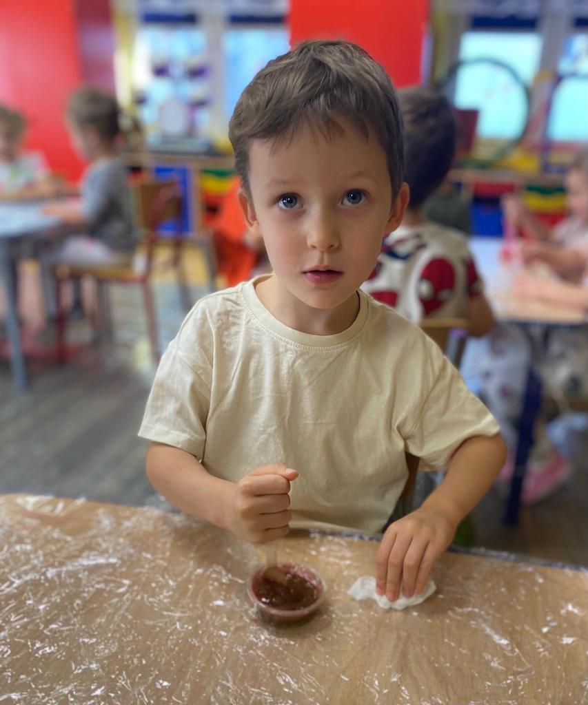 8 października dzieci ze wszystkich grup wzięły udział w warsztatach sensorycznych pt. "Masy plastyczne"- Tibidabu. Podczas zajęć każde z dzieci własnoręcznie wykonało slimy.