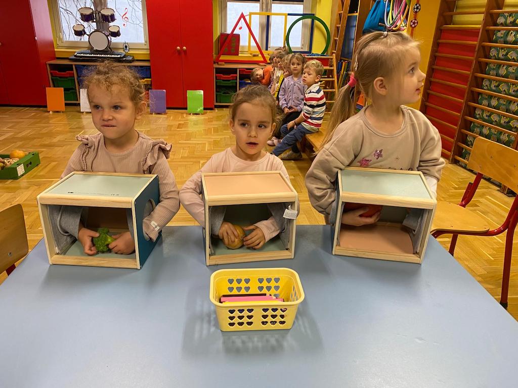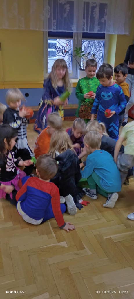 31 października dzieci ze wszystkich grup wzięły udział w warsztatach sensorycznych dotyczących zdrowego odżywiania. Podczas zajęć przedszkolaki przypomniały sobie jak ważne jest spożywanie warzyw i owoców.