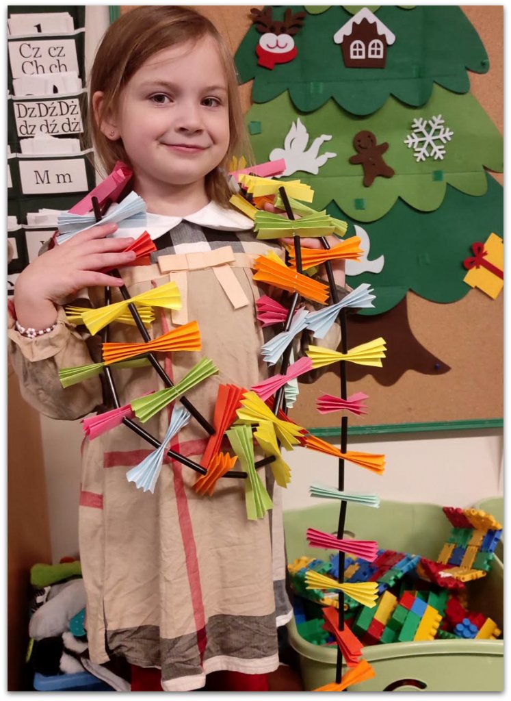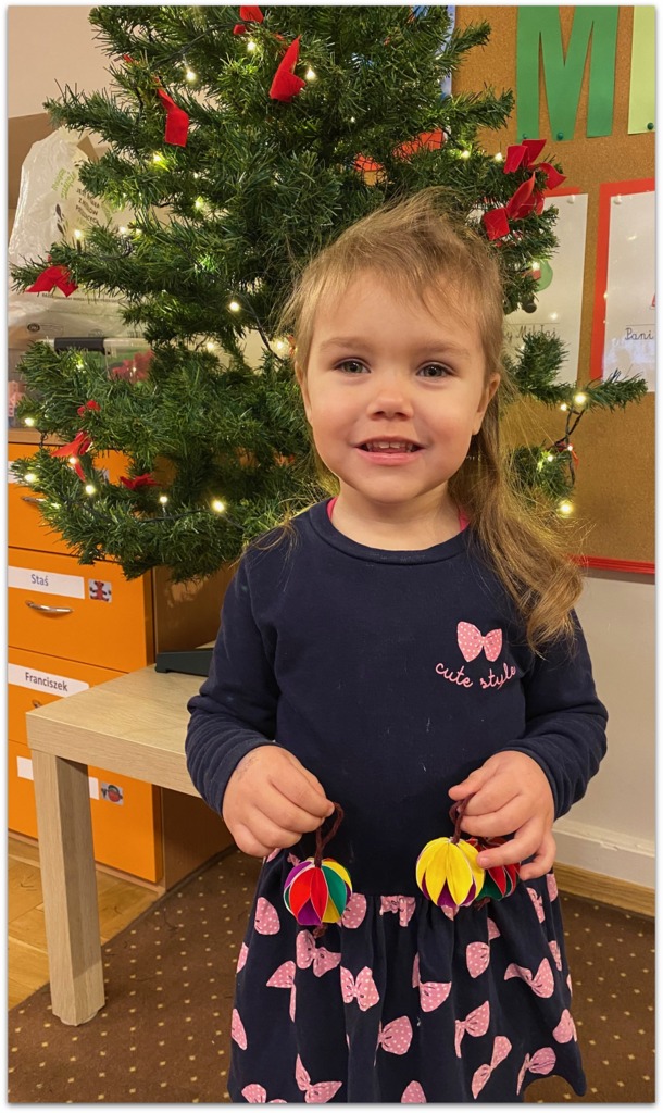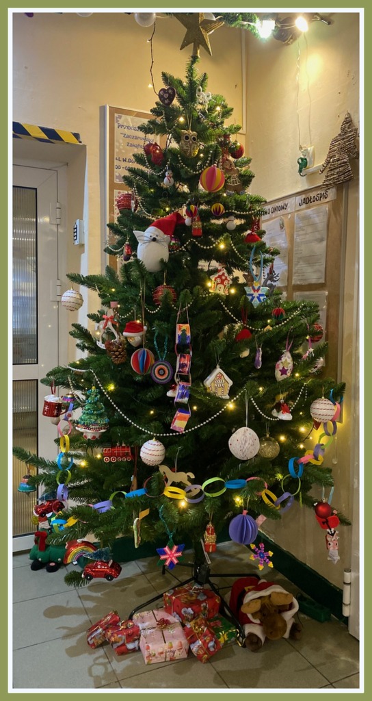 Naszą przedszkolną choinkę ozdobiły prace wykonane przez :