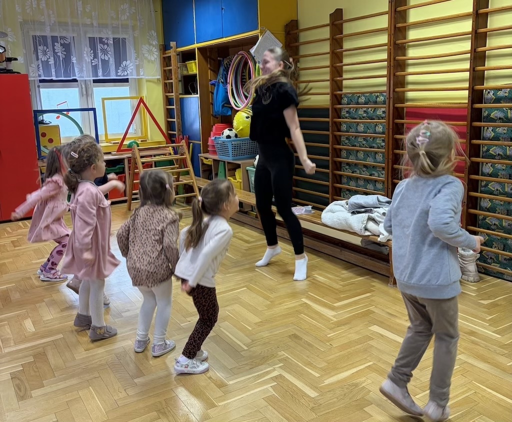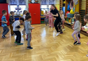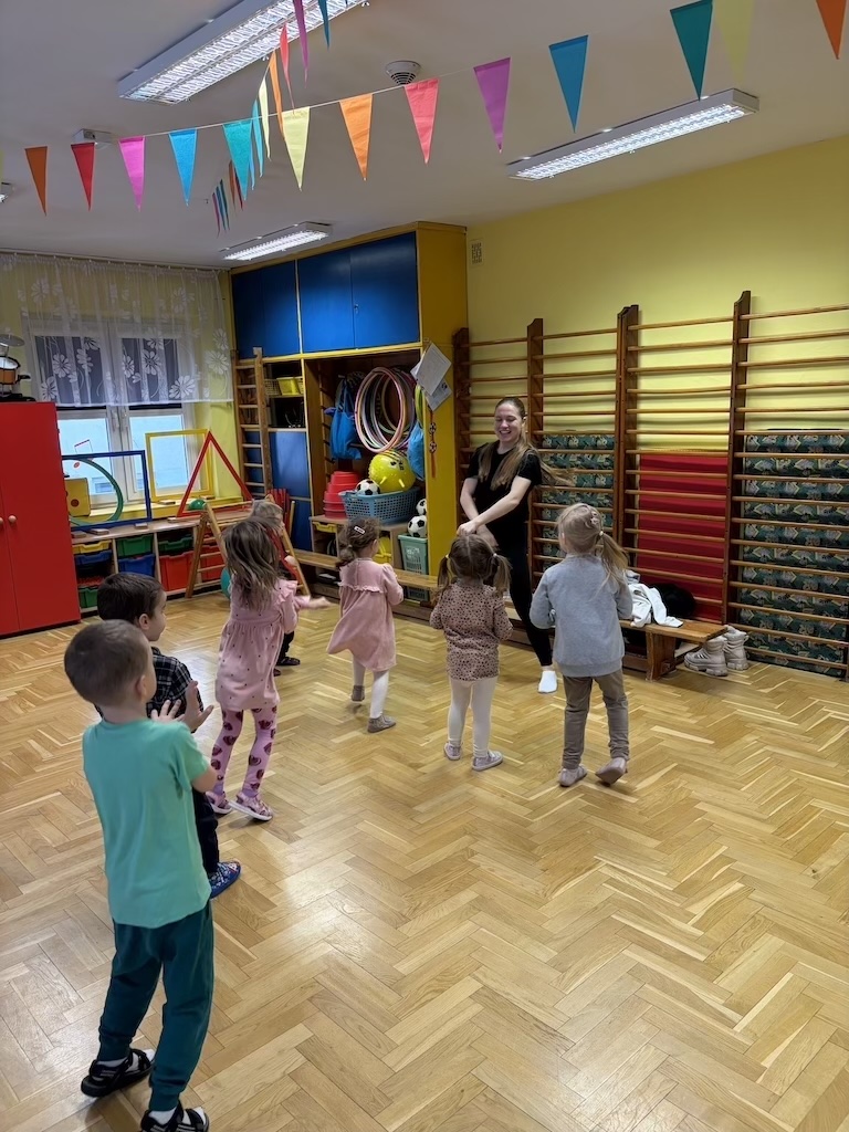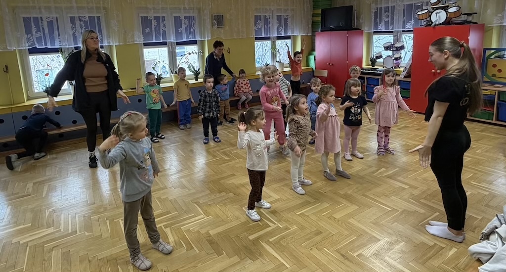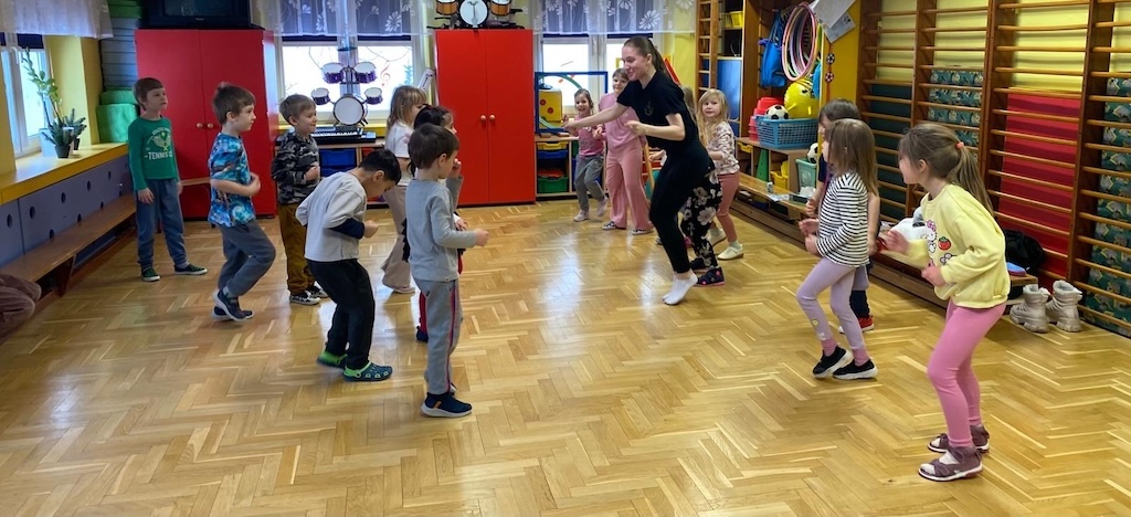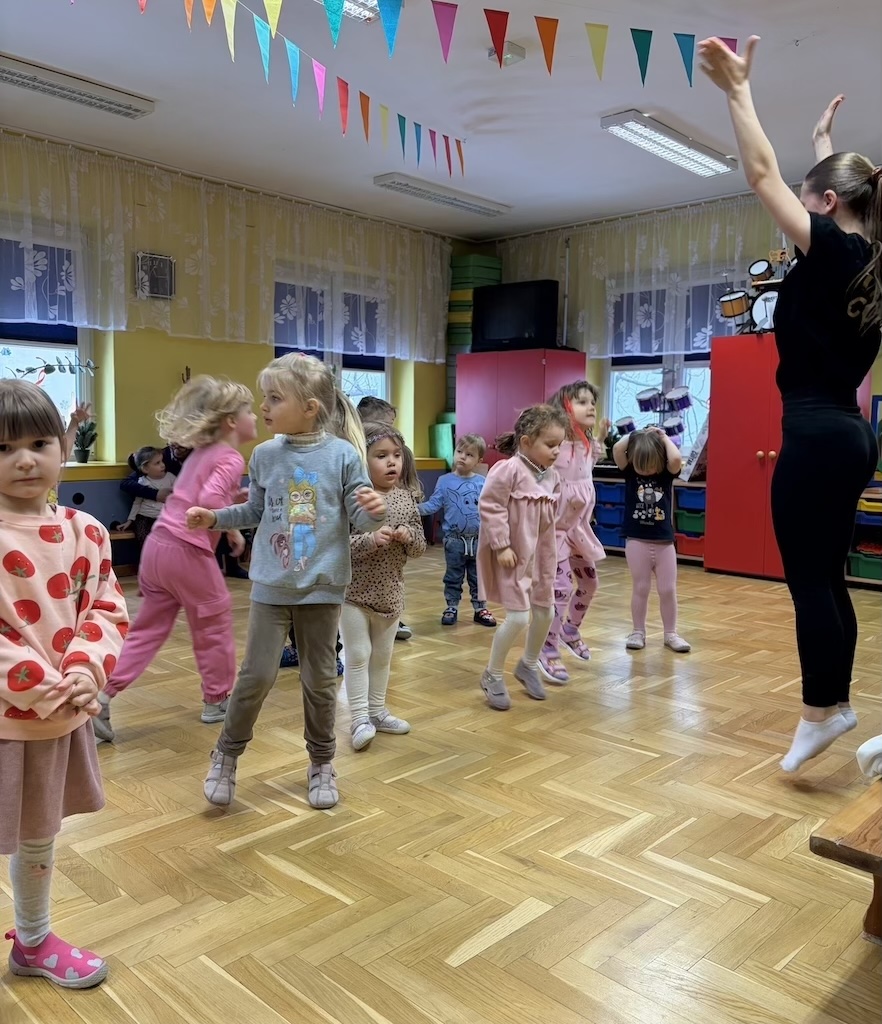 19 lutego w naszym przedszkolu odbyła się zumba dla dzieci. Zajęcia ruchowe zostały przeprowadzone dla przedszkolaków ze wszystkich grup przez instruktorkę z Fundacji Sportu i Kultury.